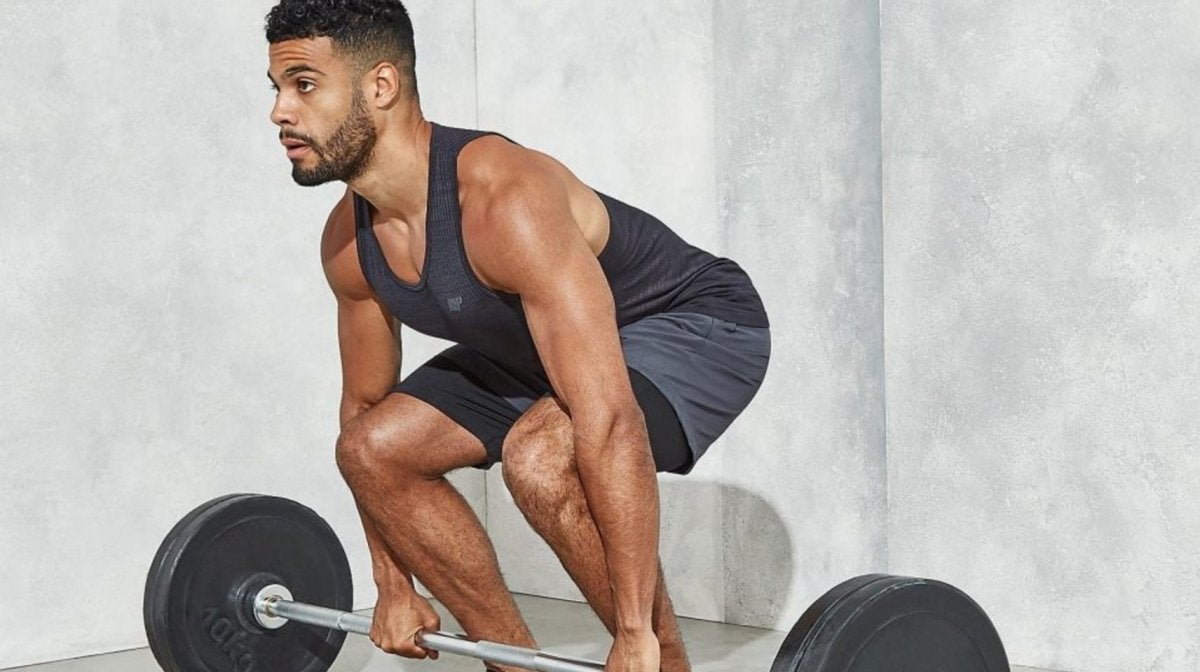 - ‘Sink’ the hips down, bringing the shins towards the bar. Externally rotate your shoulders in order to extend the thoracic spine, and recruit the Latissimus Dorsi and postural muscles.